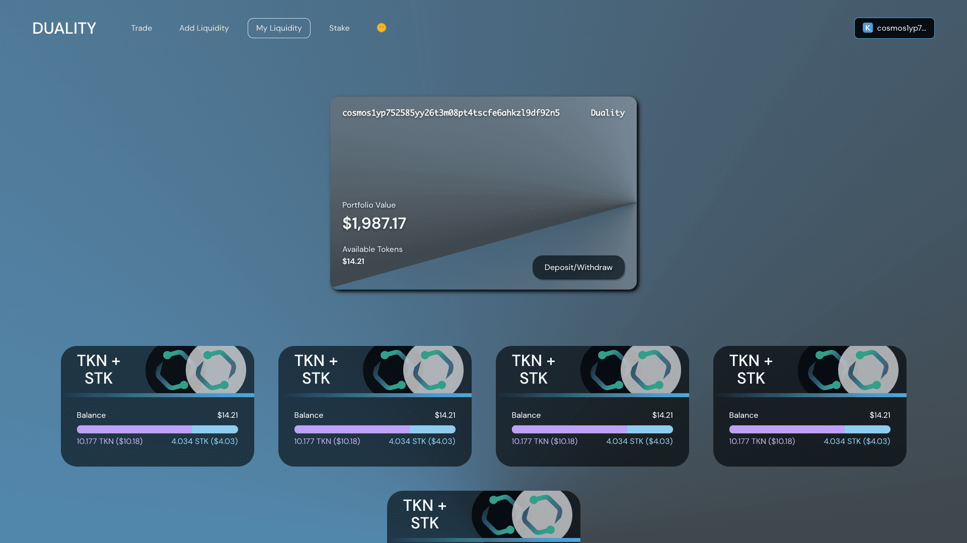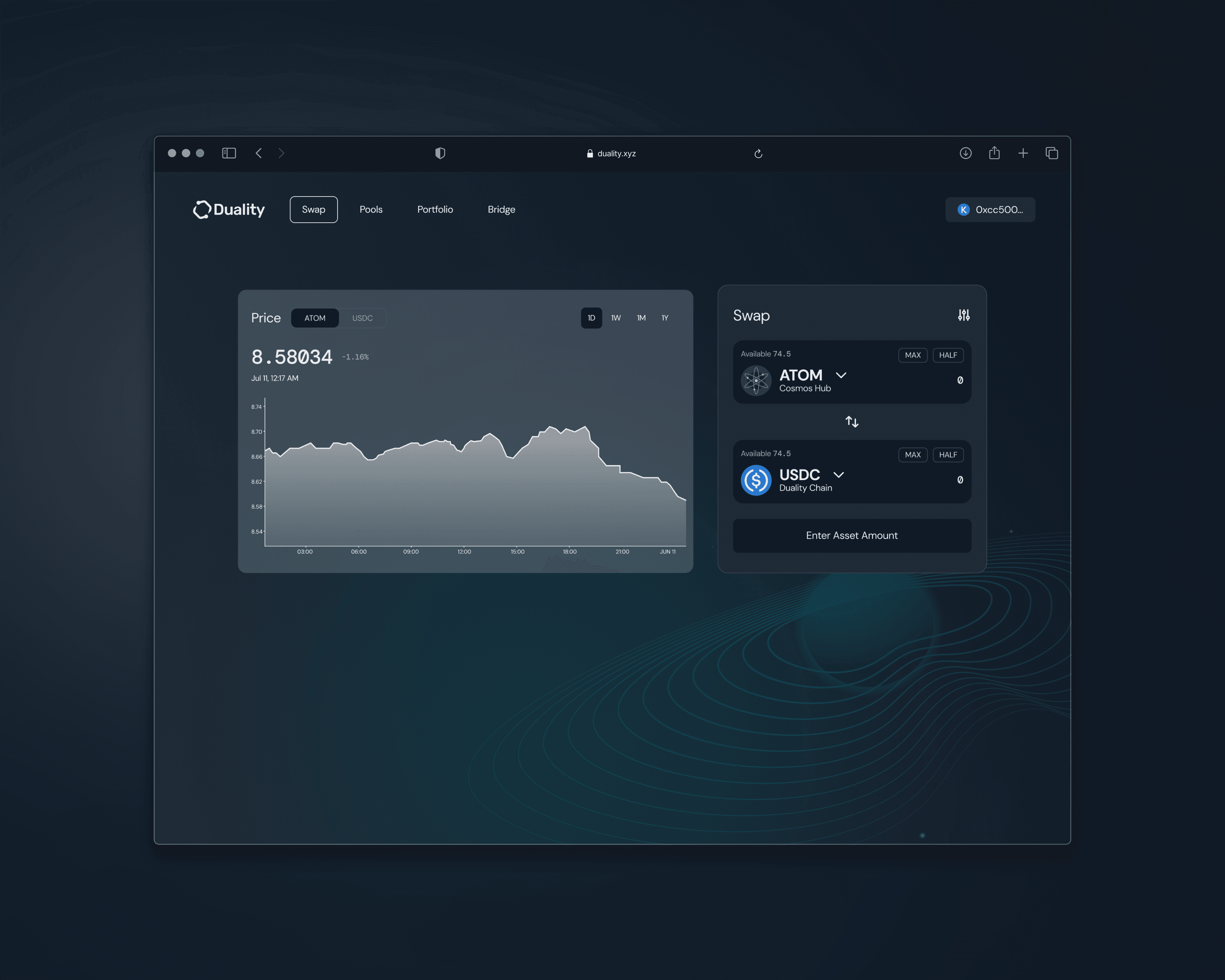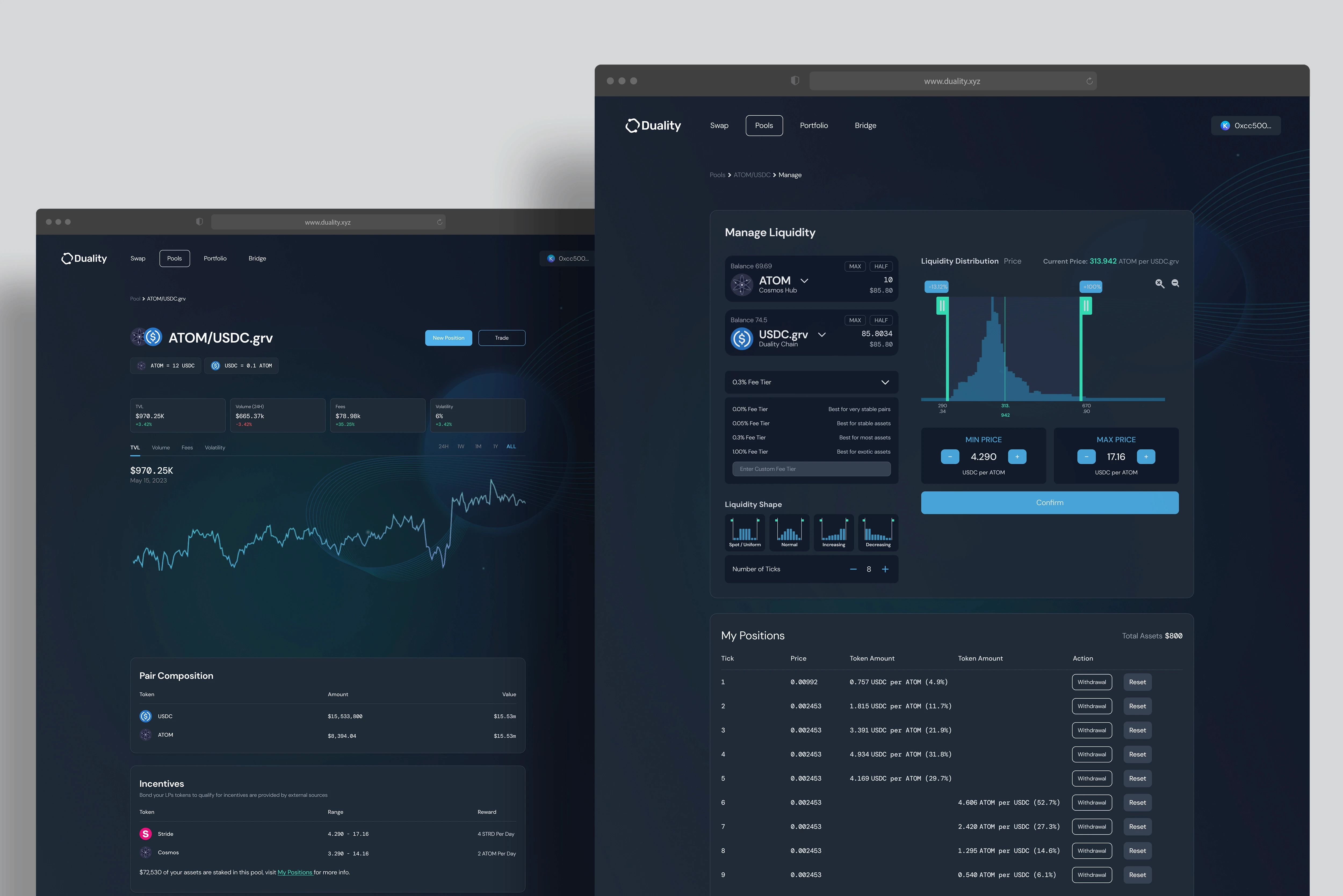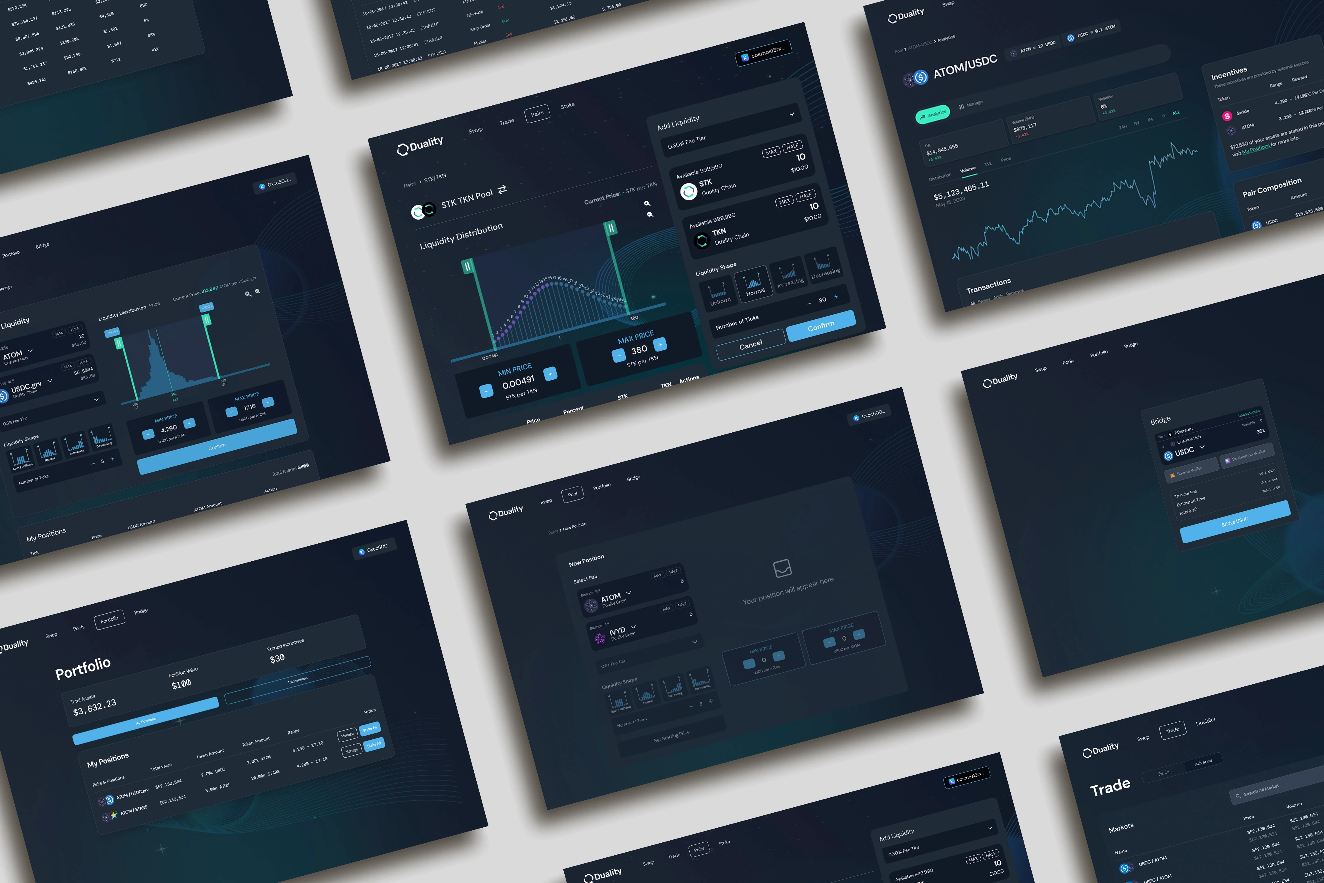 I joined Duality as the sole Product Designer on a seven-person founding team, tasked with shaping a decentralized exchange that could compete with Uniswap v3-style liquidity pools inside the Cosmos ecosystem.